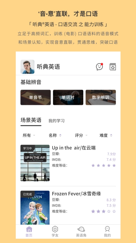 为你准备了海量丰富的英语口语素材,能借助趣味配音、演讲练习、欣赏美剧片段等多种形式来学习。