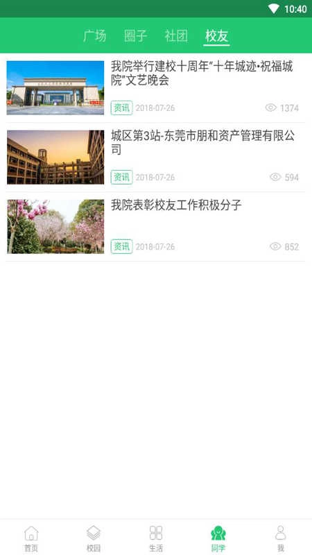 在线报名参加活动或比赛,发布动态与同学互动