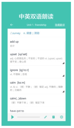进入单词朗读功能后,能够依据个人的学习习惯来设置朗读模式。