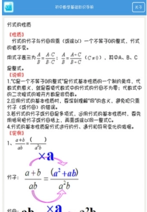 这本手册对初中数学的基础知识进行了详尽阐述,涵盖数的概念与运算、代数式、方程和不等式、函数、几何等多个领域。每个知识点都配备了详细的阐释以及丰富的例题,助力学生更深入地理解并熟练掌握相关内容。