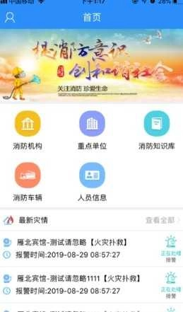 实现重点单位管理、消防机构管理、消防车辆定位管理、消防员定位管理以及消防知识库等功能