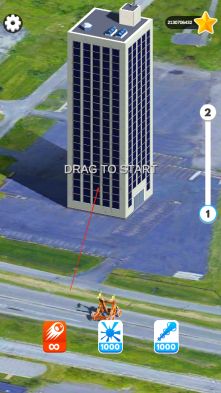 1、进入游戏后,通过滑动屏幕来调整投石车的角度,点击屏幕以蓄力并发射炮弹。在首次挑战时,需要击中大楼的薄弱点,完成基础的拆除任务。
