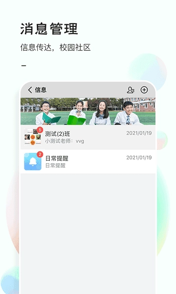 接收各类通知的显示,例如:家校通知、学生留言、作业通知、考勤管理等。