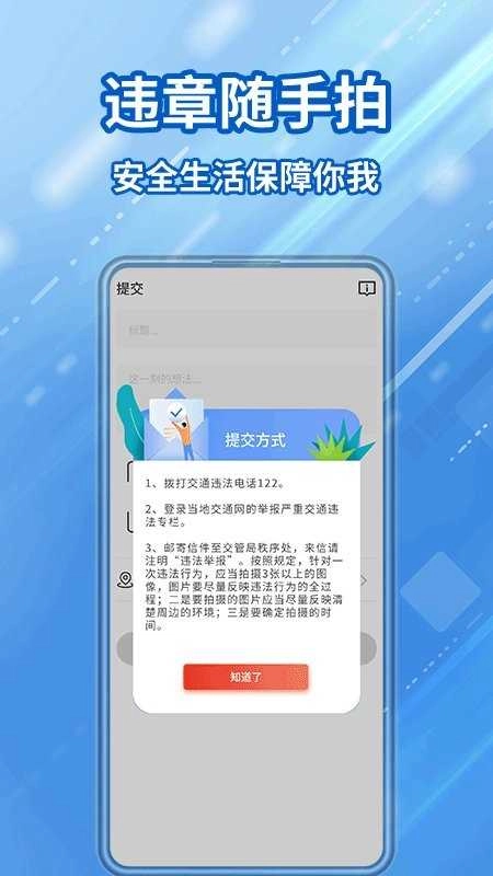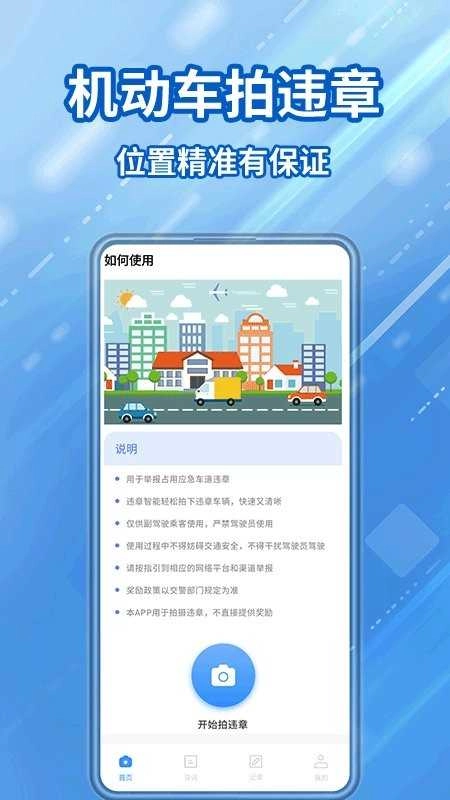 交通违章随手拍是一款鼓励公众参与的拍照举报应用,主要功能是在用户出行过程中,如发现交通违章行为,可随时拍摄并上传照片,对违规行为进行举报和反馈。这款软件不仅为用户提供了一个便捷的监督渠道,也有助于增强大众的交通安全意识,推动整体交通环境的有序与文明。