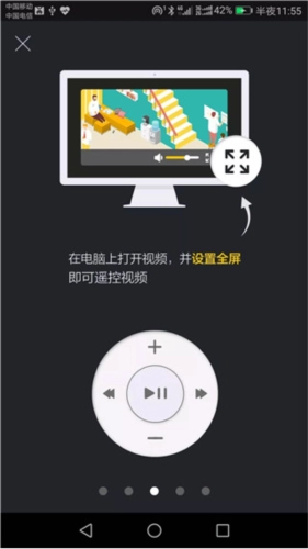要通过手机操作电脑上的视频,首先得让正在播放的视频处于全屏模式,之后就能借助手机上模拟的遥控功能键,来调整视频播放的音量、进行快进或快退操作,以及切换到下一个视频等。