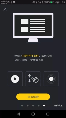 用手机操控PPT,上下滑动就能实现翻页或返回,还能模拟激光笔在屏幕上投射光点。