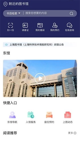 上海图书馆APP是由上海图书馆(上海科学技术情报研究所)开发的图书馆阅读软件,助力用户提升阅读体验。平台上丰富的藏书资源能充分满足用户的阅读需求与兴趣,还有各类图书和讲座可供分享与快速收藏。此外,它能帮助用户轻松查找座位,针对首次到访上海图书馆东馆的用户,还提供东馆导航服务,让找书更便捷;用户已借阅的书籍以及个人预约信息也能随时便捷查询。