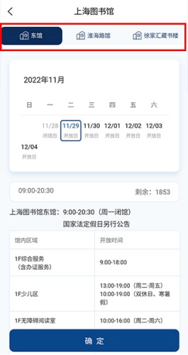 进入预约服务界面后,在上方选择想要预约的图书馆