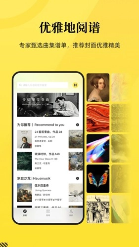 【优雅阅谱指南】专业顾问团队精心筛选超万首原版古典乐谱资源,让您无需在海量乐谱中反复试错;平台定期更新多主题、高水准的精选谱单,为演奏进阶提供清晰指引;同时优选高品质的优雅封面设计,即使导入推荐封面,也能保持视觉上的精美质感。