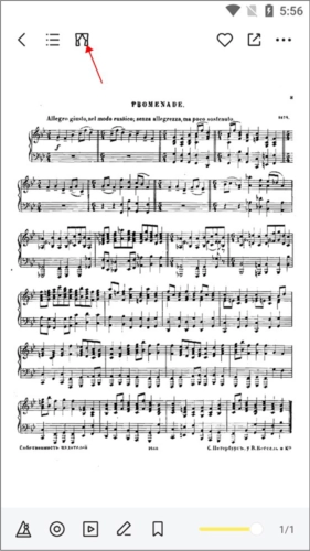 进入曲谱界面后,点击曲谱左上角箭头指向的小图标。
