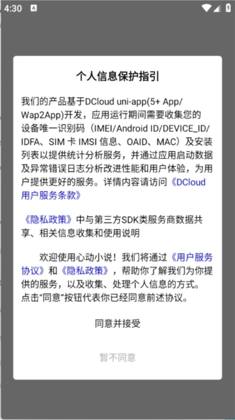 安装安卓软件后,进入软件查看并同意隐私政策与用户协议。