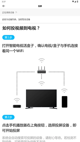 进入投屏界面后,挑选要投屏的设备就行,电视和手机得在同一个WIFI环境下,投屏才能成功。