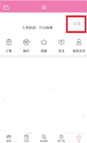 用户进入我这个界面后,找到人生阶段选项,点击进入后找到设置并打开。