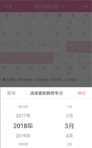 最后只需点击当月下一个月份右侧的白色小箭头图标,就能自由跳转到任意月份,如此一来,就可以依据之前的记录来推测后续的经期周期长度了。
