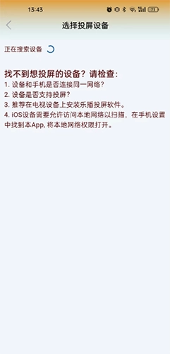 选择投屏设备时,需确保设备与手机连接同一WIFI网络才能成功投屏。