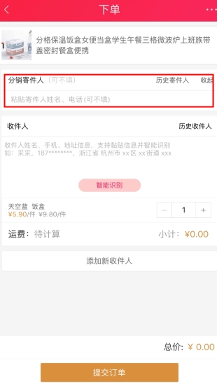 批量下单,多收件人多商家多商品一并下单