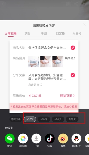 一键转发,支持九图、合图转发朋友圈
