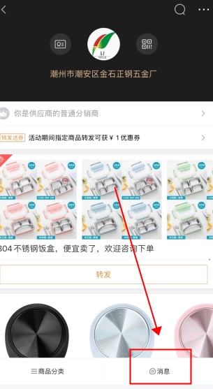 首先在我们目标供应商界面点击他的二维码