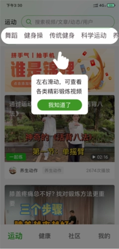 左右滑动,可以查看各类精彩的锻炼视频