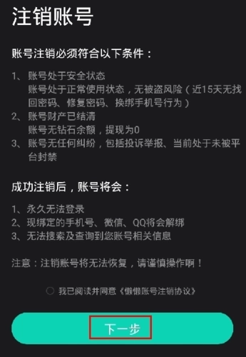 只要满足注册要求就能进行注销操作,点击下一步按钮后,用户就可以按照流程继续操作了。