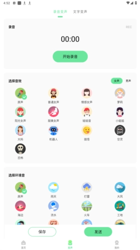 ·自由录音使用女生、大叔、搞怪、惊悚各种音效播放
