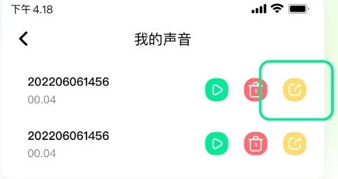 选择语音包或音录制好的声音,点击右边的分享按钮