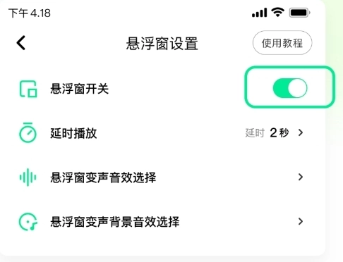 可以设置变音相关选项,包括音效和背景音效。你可以在悬浮窗设置中重新选择并更换自己喜欢的音效,以便在悬浮窗录音时快速切换使用。
