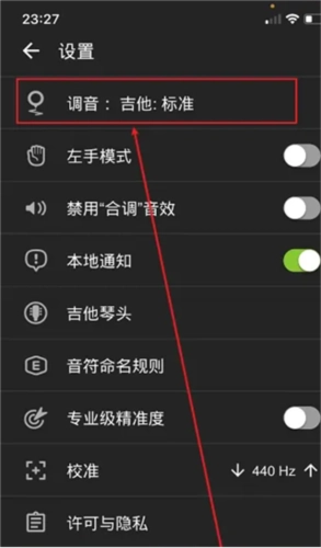 打开GuitarTuner吉他调音器后,点击【设置按钮】