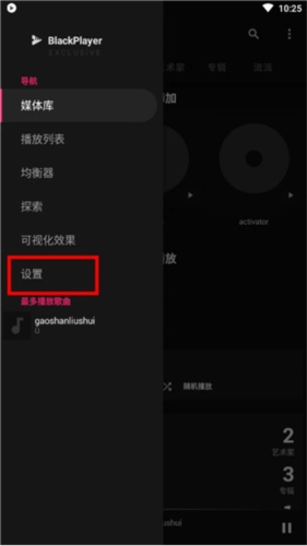 均衡器是黑色播放器的实用功能之一,用户能够依据自身的听歌设备与音乐类型来调节音效。接下来为大家介绍blackplayer的声音效果开启位置。