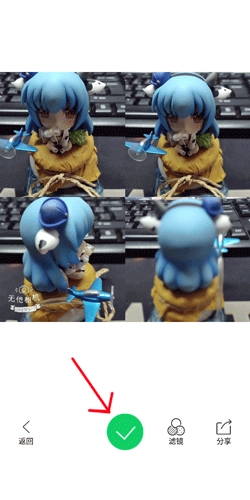 选好后点击绿色按钮拍照,我选的是上下拼图模式,拍出来的照片就是两张图上下拼接的效果啦!拍完照片别忘了点绿色的对勾保存好哦!