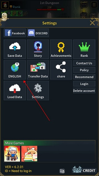 1、新玩家进入游戏后,可按照图示指引,在界面右上角的下拉菜单中,选择“Settings”选项。