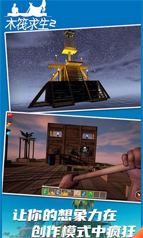 4、小小的木筏最终能够扩建至更大规模,这将为游戏带来全然不同的整体体验。