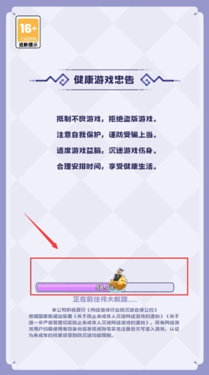 3、等待加载完毕后,阅读健康游戏的提示内容。