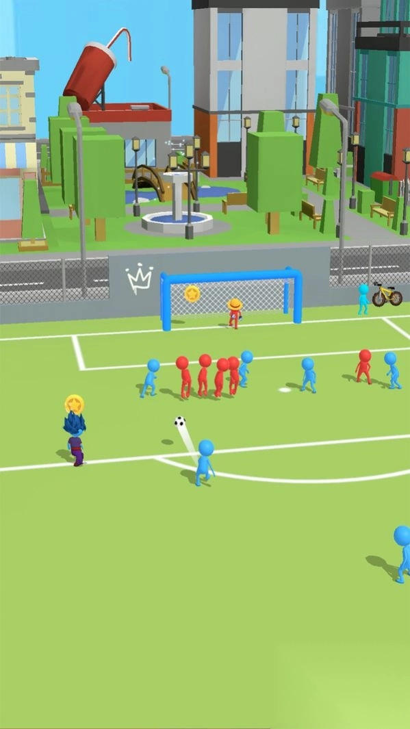 3、指尖轻互动解压体验:操作仅需滑动与点击,无需复杂战术,主打“瞎踢也能赢”的轻松感——新手乱点也能触发搞笑进球,高手可研究“利用场地反弹踢球”用对手身体当跳板。