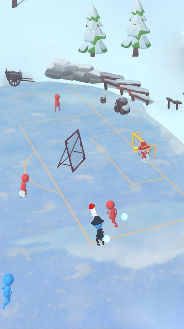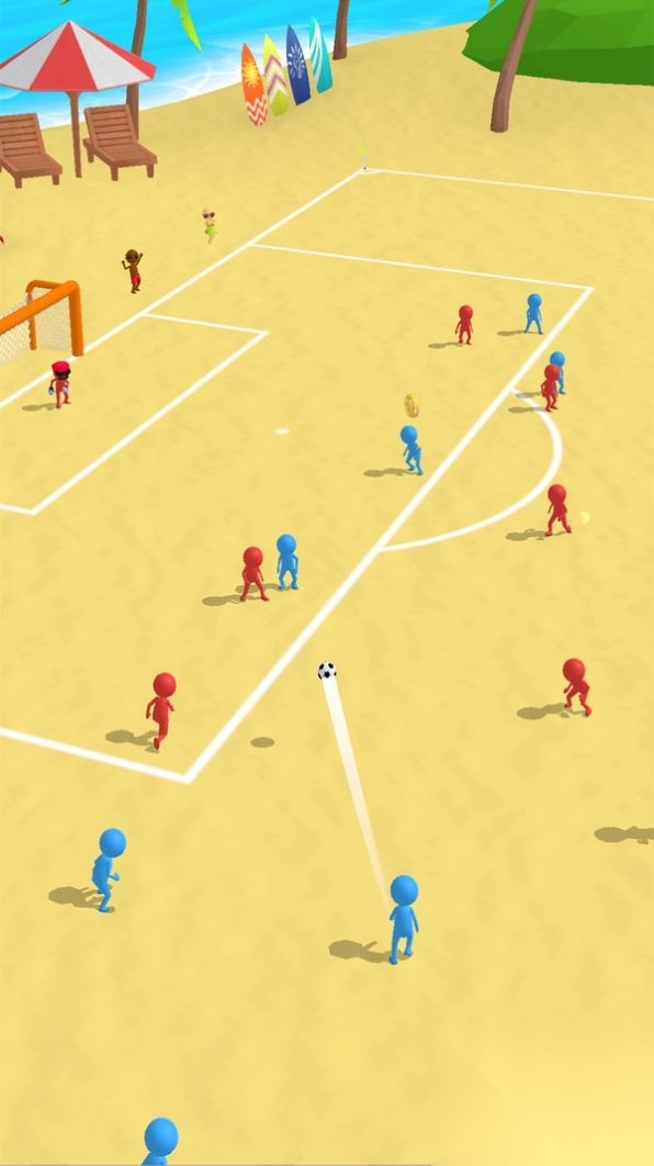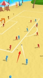1、游戏包含雪地、沙滩、城市球场等多种场景模式,每种模式对应不同的足球比赛环境。玩家需要操控蓝色火柴人队伍,与红色队伍进行对抗。
