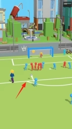 2、操作目标传球、射门,避开对手(红色火柴人),突破防线,将球踢入对方球门(不同造型门框)得分。