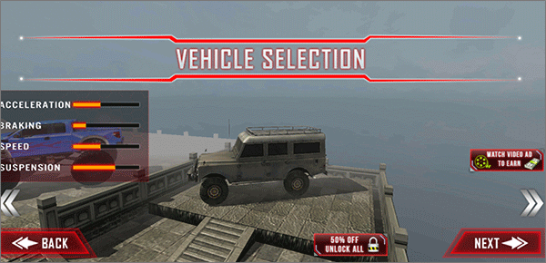 3、为你提供了多种不同的越野车,你可以挑选自己喜欢的进行驾驶。