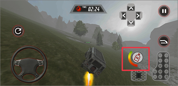 4、若玩家驾驶汽车遇到无法爬上的大坡,可点击右侧按钮为汽车提供动力。