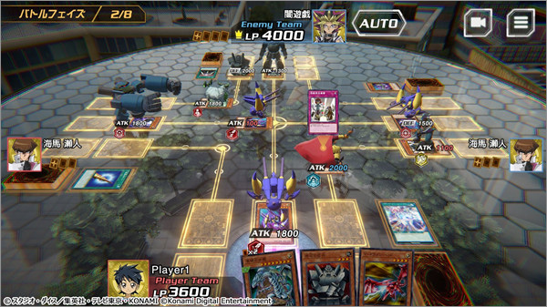 游戏王交叉对决游戏中玩家和搭档角色组队,选择对手角色队伍,展开二对二的决斗!
