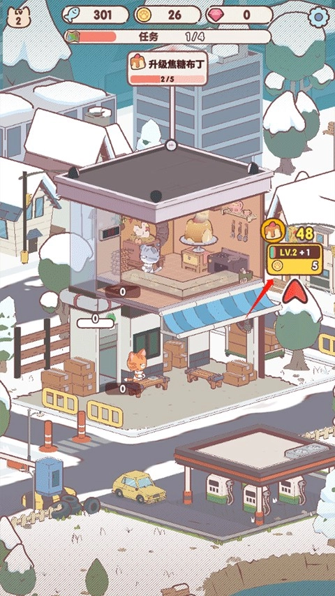 4、玩家能够持续对猫塔进行升级与扩建,构建起高耸入云的甜品大厦。