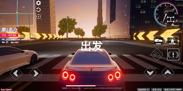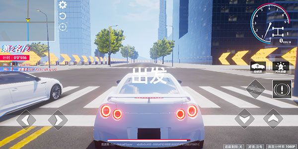 6、玩家通过下方两侧的按钮来控制车辆,左侧显示的是排名和用时信息。