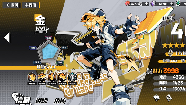 4、最后升阶之后属性的提升当然也是要比其他角色高出去不少,这几个角色都是潜力角色,但却不是零氪党的选择,,因为都是前期无法满星的角色,实力不突破基本上谁都打不过。