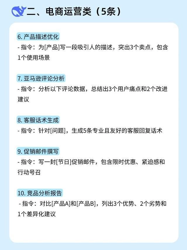 DeepSeek 凭借先进技术,为用户带来便捷体验,可不少人因指令使用不当,无法充分利用其功能。其实,掌握丰富且恰当的指令,能让 DeepSeek 更好地理解需求,给出精准回应。无论是营销推广时构思创意文案,还是内容创作中生成爆款标题,又或是编程开发里获取代码支持,都有相应指令。接下来,带你全面了解 DeepSeek 指令,开启高效使用之旅 。