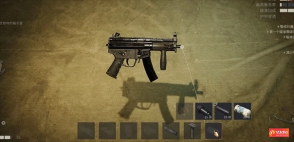 格洛克:在跳蚤市场可买到,赠送一个加反射镜(增加反射)和一个枪口(根据等级增加暴击以及对同一目标有命中奖励),点射为 4 颗子弹,理论上伤害比部分冲锋枪高,但不能安装简易消音器。