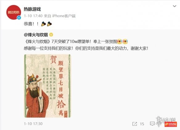 《烽火与炊烟》的Steam商店页面信息有所变动,其发行商已由原先的FireWo Games调整为Thermite Games(即热脉游戏)。值得注意的是,热脉游戏官方此前还转发过该游戏Steam愿望单7天内突破10万的相关动态,由此推测,《烽火与炊烟》后续的发行事务或将全部交由热脉游戏负责。
