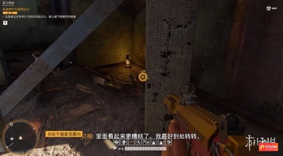 8、再从房子里跳下一楼,梯子旁边废墟角落里有第四本日记。