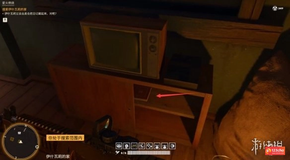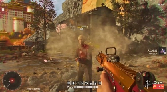 2、触发任务后,往前走会看到两栋房子,先去右边那栋。