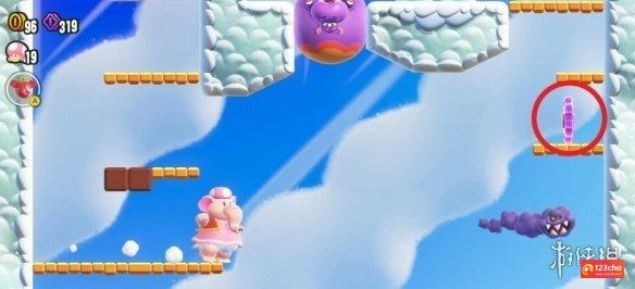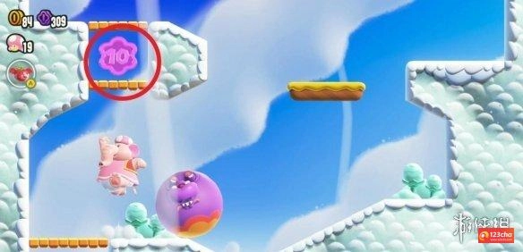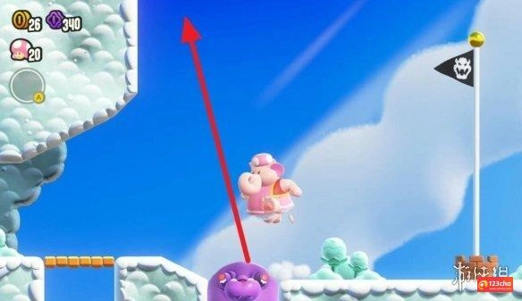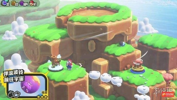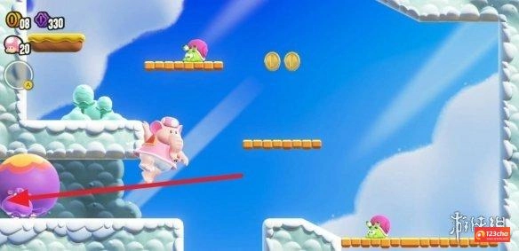 4、关卡提示:把弹滚波铃嵌入洞里后,就可以乘上去一弹一弹地跳跃啦!