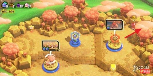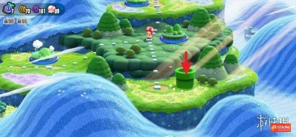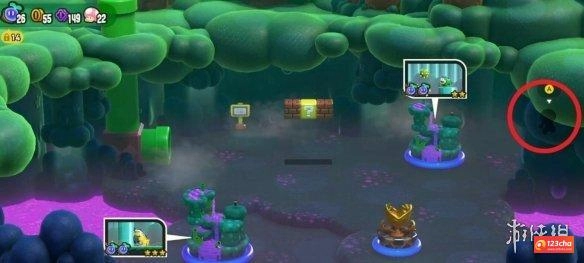 3、关卡的选择位置在森林沼泽的右上角,按下A键即可进入,在这里能找到第三个奇诺比奥队长,还能获得50枚紫币。
