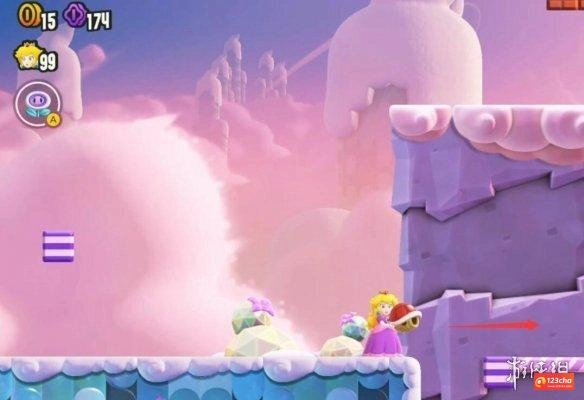 4、关卡提示:带有紫白条纹的砖块能够被顶动,顶动之后会生成向上延伸的梯子或者横向的桥梁,而桥梁可以从下方抓握住。